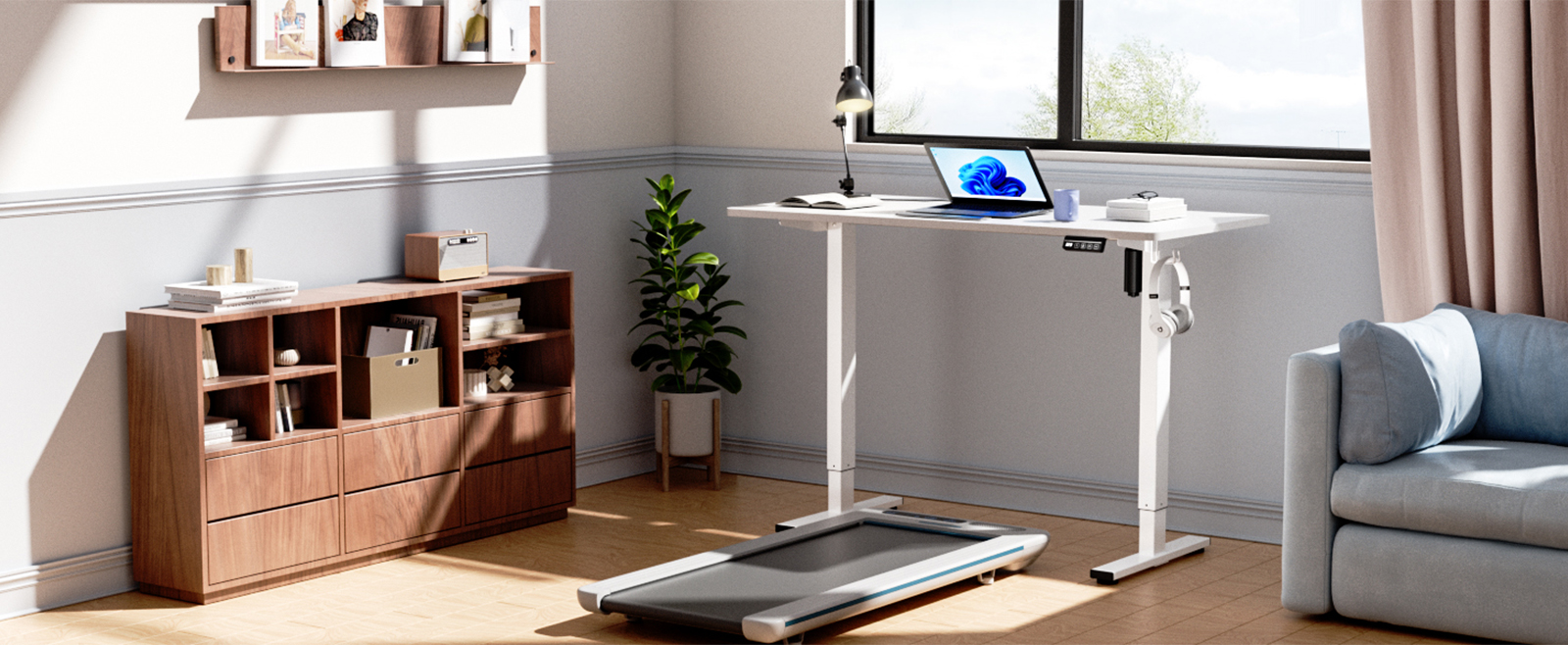 ประหยัดพื้นที่และการทำงานที่เงียบ: โต๊ะยกไฟฟ้ามอเตอร์เดี่ยว มักจะมีขนาดกะทัดรัดและประหยัดพื้นที่มากกว่าเมื่อเทียบกับระบบมอเตอร์คู่ ทำให้เหมาะสำหรับพื้นที่ทำงานขนาดเล็กหรือโฮมออฟฟิศที่การเพิ่มพื้นที่เป็นสิ่งสำคัญ โดยทั่วไปการทำงานของระบบมอเตอร์ตัวเดียวจะเงียบกว่า ซึ่งเป็นคุณลักษณะสำคัญในสภาพแวดล้อมสำนักงานที่ใช้ร่วมกันซึ่งจำเป็นต้องรักษาระดับเสียงรบกวนให้น้อยที่สุด